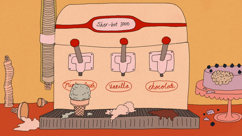 As capitalism runs rampant in an outdated world, the owner of a sweet shop abuses her access to gelatinous goods, rotting out her teeth in hopes of returning to a handsome dentist.