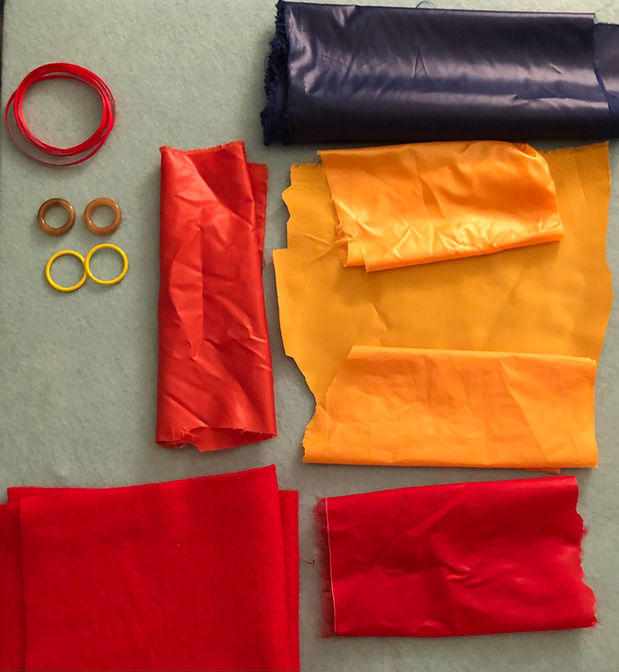Materials: Foam, wood, metal, fabric, dye, paint, paper, tape, polymer clay, cardboard
